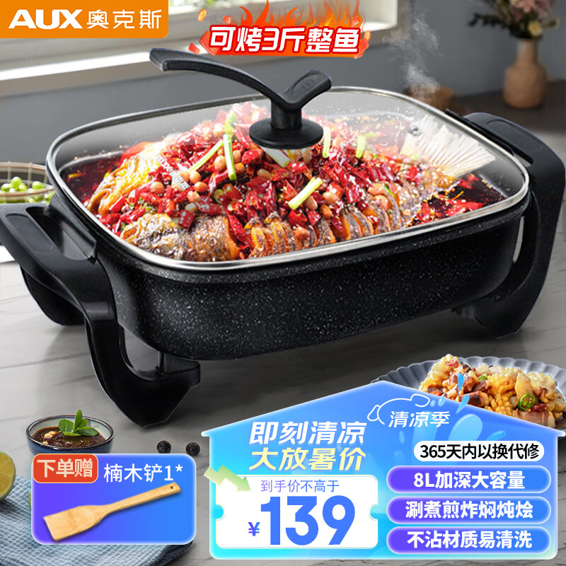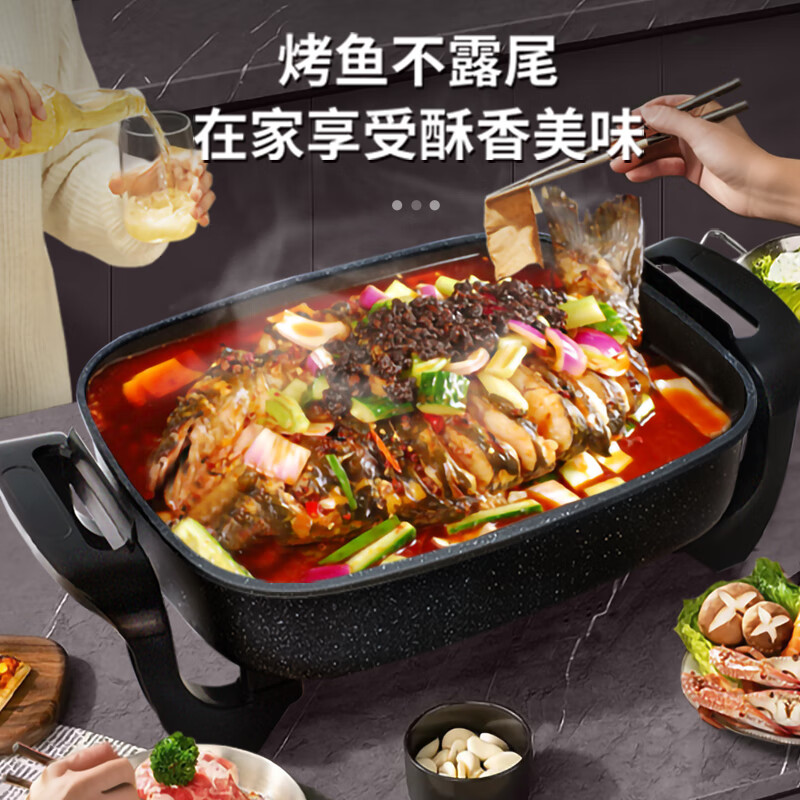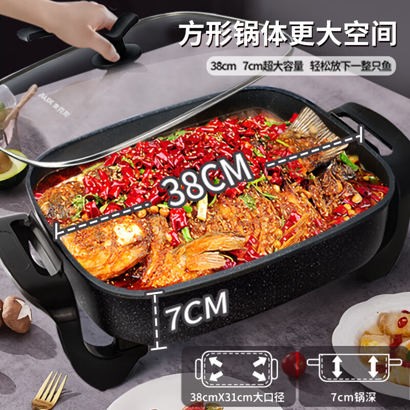 奥克斯(AUX)烤鱼锅电火锅涮烤一体两用锅火锅专用锅多功能料理锅烤肉锅纸包鱼多用途锅长方形家用火锅价格:139.00元!