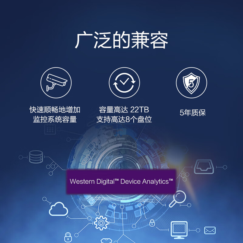 西部数据 监控级硬盘 WD Purple 西数紫盘pro 12TB CMR垂直 7200转 256MB SATA AI技术(WD121EJRP)价格:2599.00元!