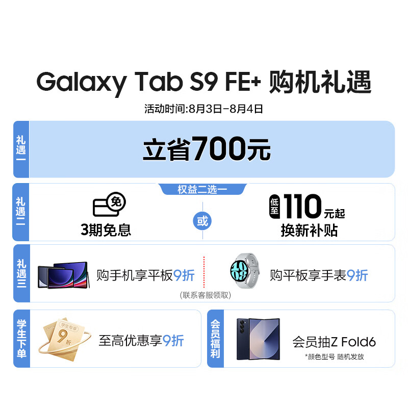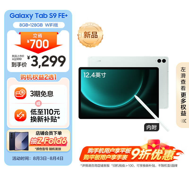 三星(SAMSUNG) S9 FE+2023款Tab平板电脑12.4英寸8+128GBWIFI版护眼高清大屏IP68防水含Spen薄荷绿价格:3299.00元!
