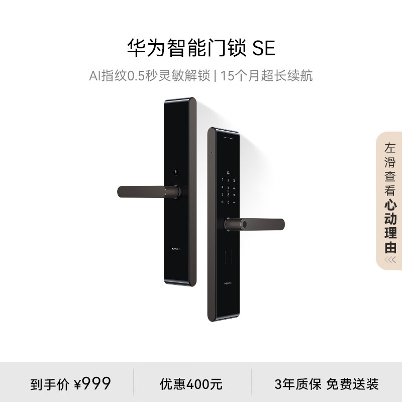 华为智能门锁SE AI指纹锁 15个月超长续航 电子门铃 家用防盗门密码锁 支持天地钩 NFC电子锁价格:999.00元!