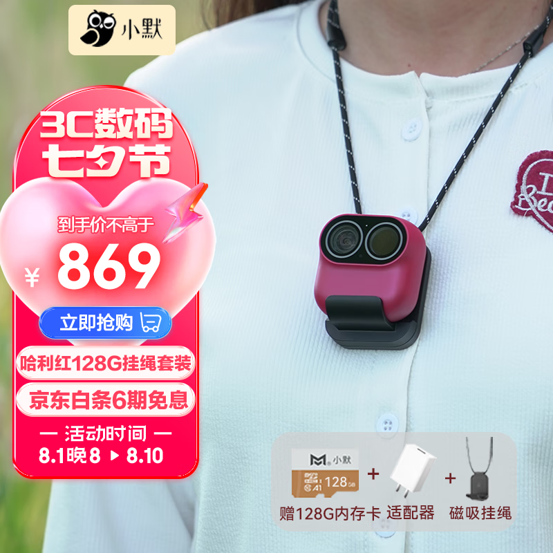 小默魔法相机vlog摄像机强力磁吸监控家用礼盒套装 骑行便携式运动相机 哈利红 128G内存卡+磁吸挂绳价格:919.00元!