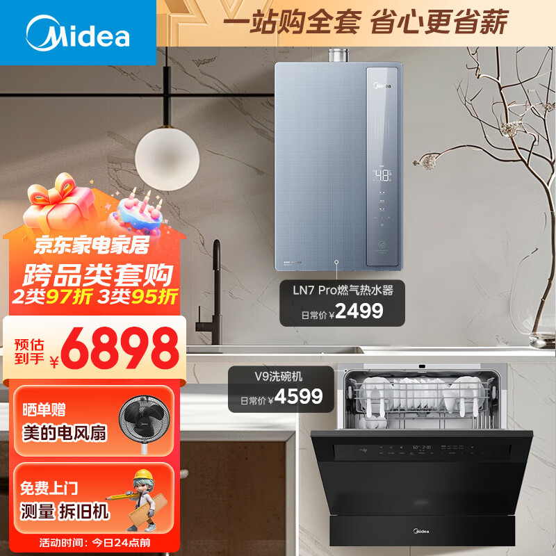 美的(Midea)一级能效下置风机16升燃气热水器LN7 Pro+嵌入式台式家用灶下13套V9洗碗机套装价格:6898.00元!