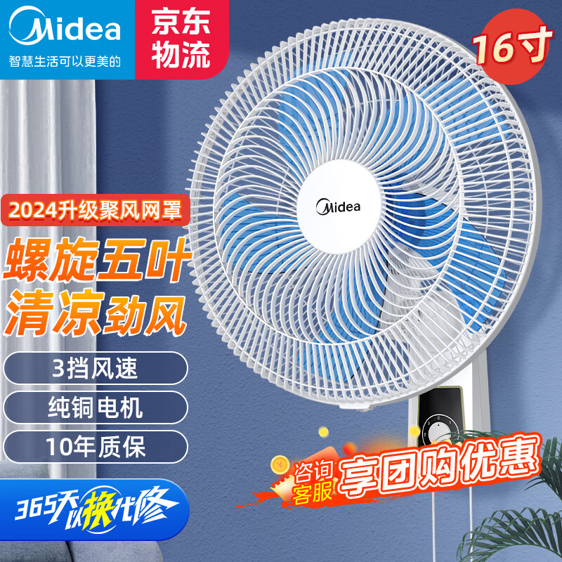 美的(Midea)壁扇16寸壁挂电风扇轻声宿舍摇头商用挂墙风扇食堂大风力工业壁扇摇头牛角扇FWA40UA价格:199.00元!