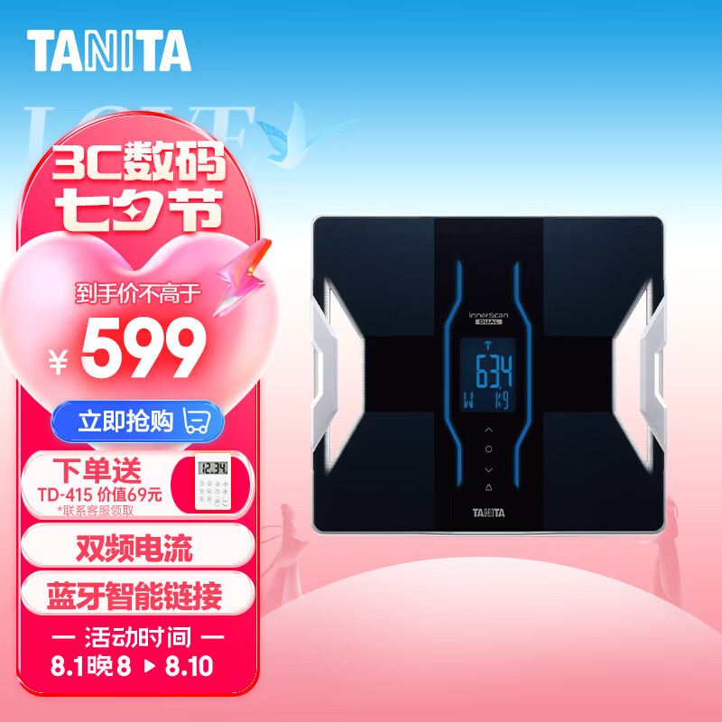 百利达(TANITA)RD-953S 专业智能电子秤体脂秤 减肥专用精准 健康检测家用 双频四电极 日本品牌 黑色价格:999.00元!
