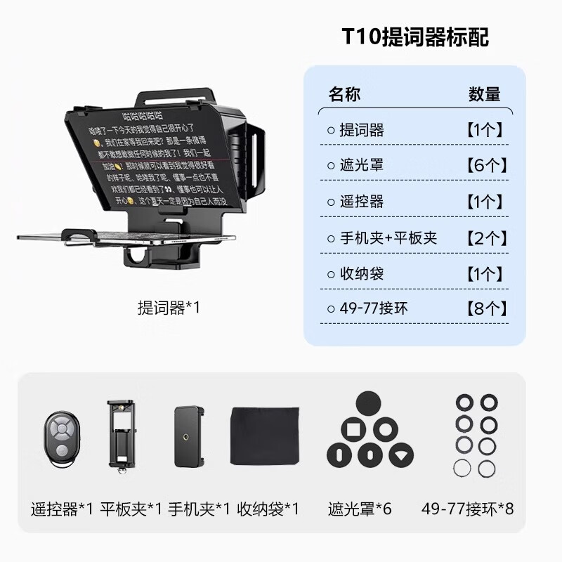 贝阳(beiyang)T10通用手机提词器直播大屏幕题词器便携短视频外拍主播抖音记词提字器板单反相机提词器读稿机价格:179.00元!