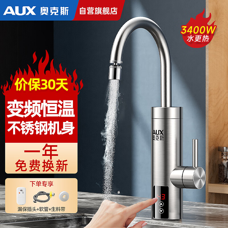 奥克斯电热水龙头即热式快速热水龙头加热器变频恒温厨房宝阳台家用热水器ADL-3AGT2X不锈钢漏保价格:259.00元!