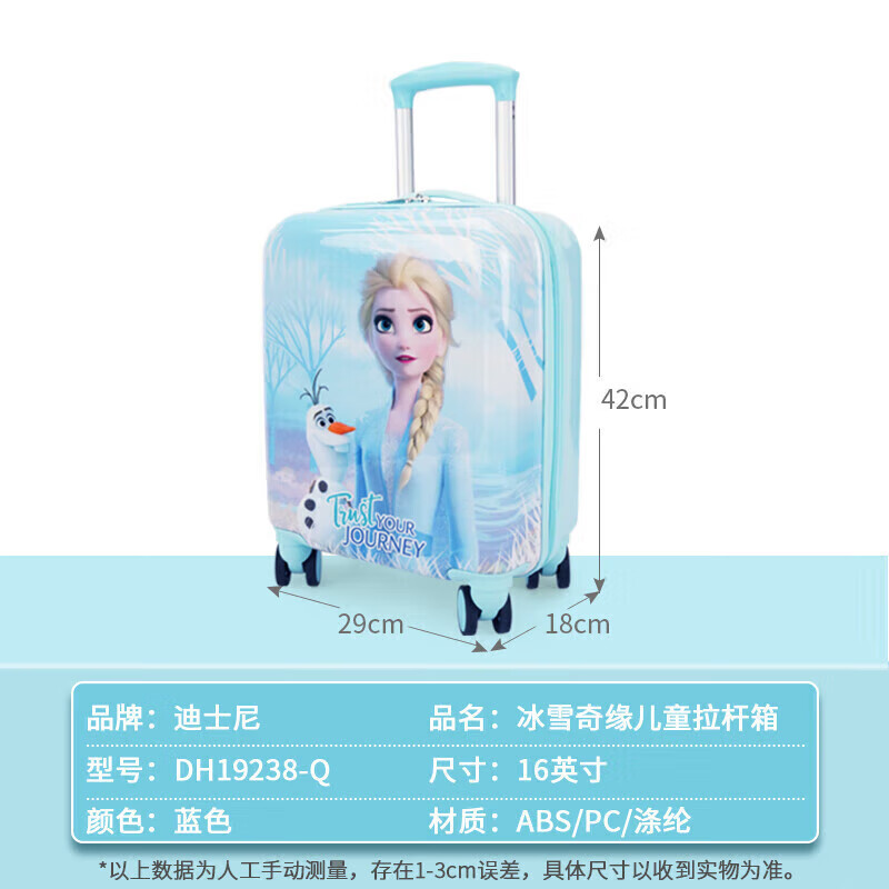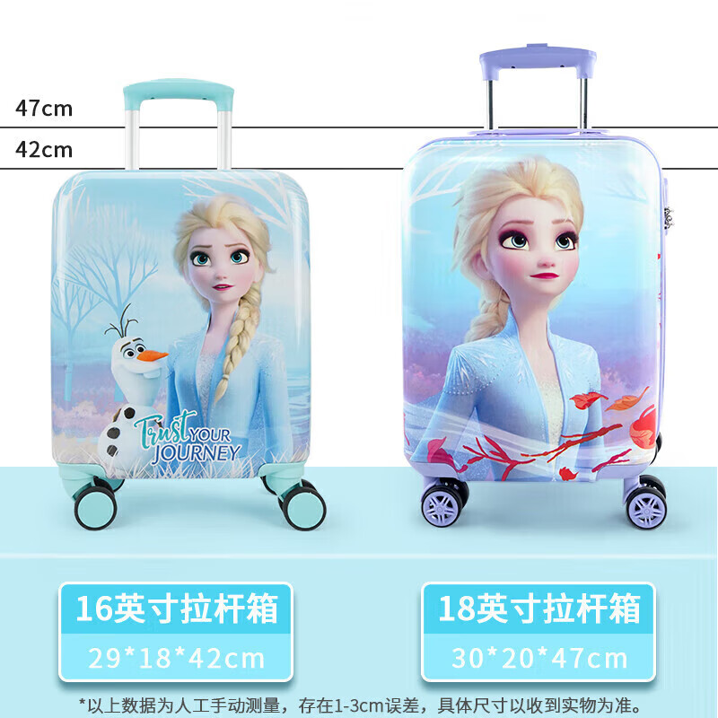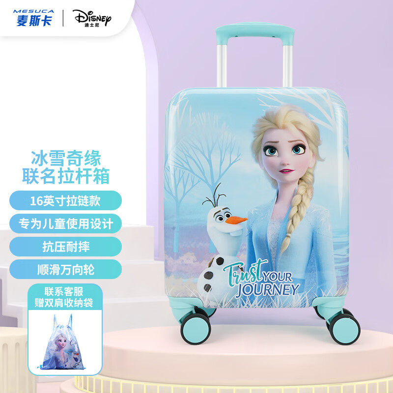 麦斯卡迪士尼联名行李箱拉杆箱旅行箱女儿童箱万向轮可登机箱爱莎16英寸价格:238.00元!