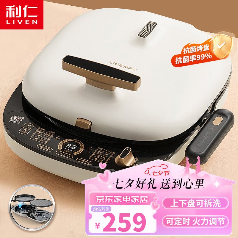 利仁(Liven)电饼铛上下盘可拆洗可定时家用双面加热电饼档加深烙饼锅煎饼锅大号烤肉锅三明治早餐机LR-D3027S价格:259.00元!