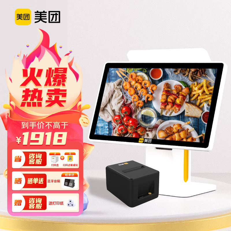 美团(Meituan )双屏收银机餐饮火锅小吃店 扫码支付收银系统(收银机+58打印机)双屏套餐一价格:1848.00元!
