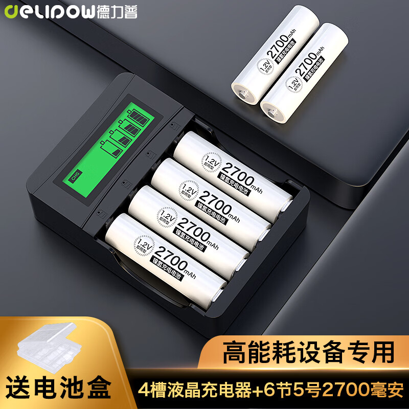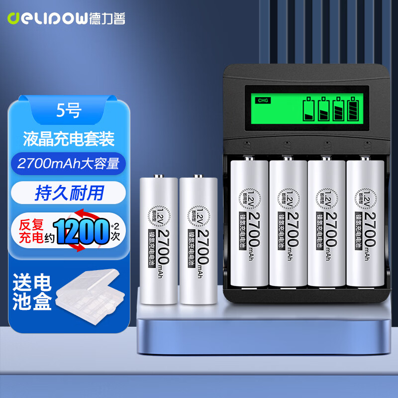 德力普(Delipow)充电电池 5号电池2700mAh大容量电池6节配液晶充电器套装适用玩具/KTV话筒等价格:110.00元!