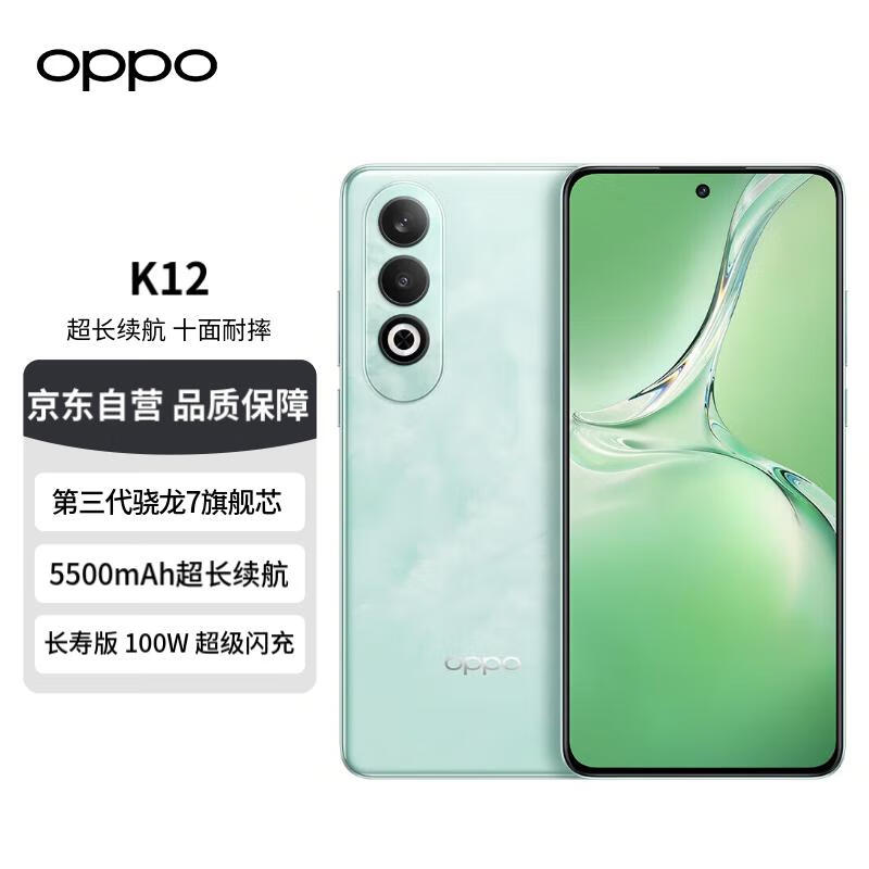 OPPOK12 5G 100W闪充 5500mAh超长续航 第三代骁龙7旗舰芯 直屏新款拍照游戏 AI手机 12GB+512GB 青云价格:2499.00元!
