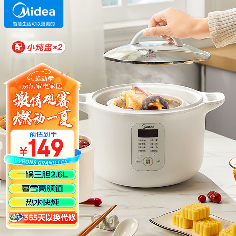 美的(Midea)电炖锅 电炖盅 隔水炖锅 煲汤锅 燕窝炖盅 炖汤锅炖汤盅 婴儿熬粥专用锅 智能预约 DZ16E102 1.6L价格:179.00元!
