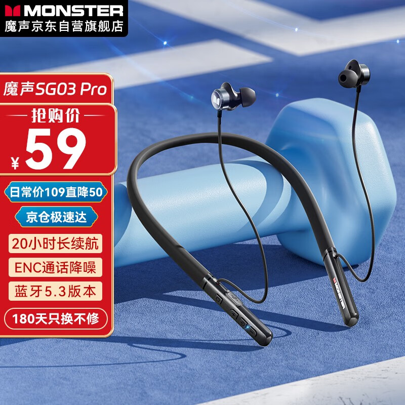魔声(MONSTER)颈挂式无线运动蓝牙耳机 蓝牙5.3 超长续航户外骑行防水防汗手机通话降噪挂脖式无线耳机价格:109.00元!