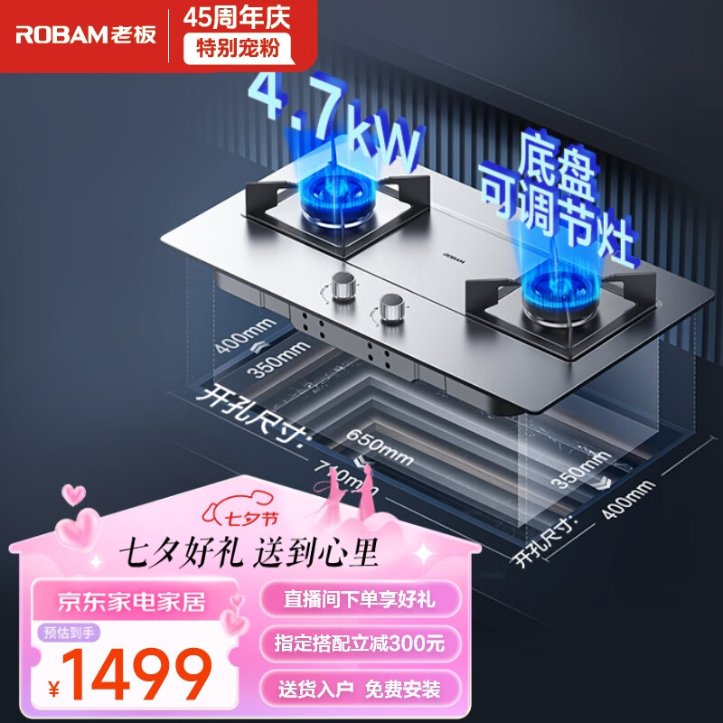老板(Robam)家用燃气灶天然气灶双灶 4.7kW嵌入式不锈钢燃气灶 易打理灶具灶台高热效猛火灶 换灶不改孔37G7A价格:1499.00元!