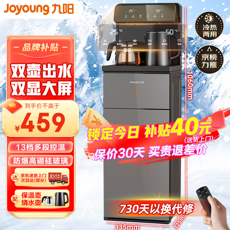 九阳(Joyoung)家用茶吧机大屏下置水桶饮水机 双温双显双出水口 立式智能茶吧机 冷热款 【月石灰】价格:459.00元!