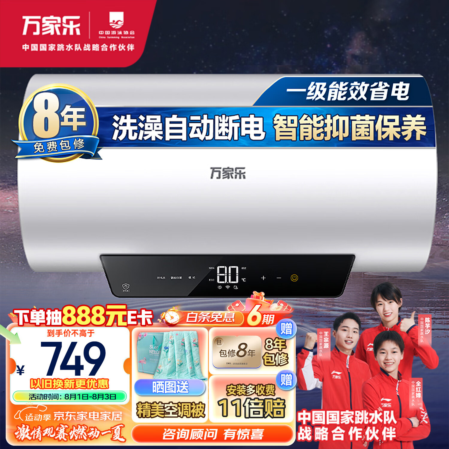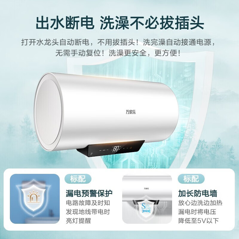 万家乐电热水器50升 储水式一级能效2500W速热 出水自动断电 智能保养手机智控D50-FW2 以旧换新价格:749.00元!