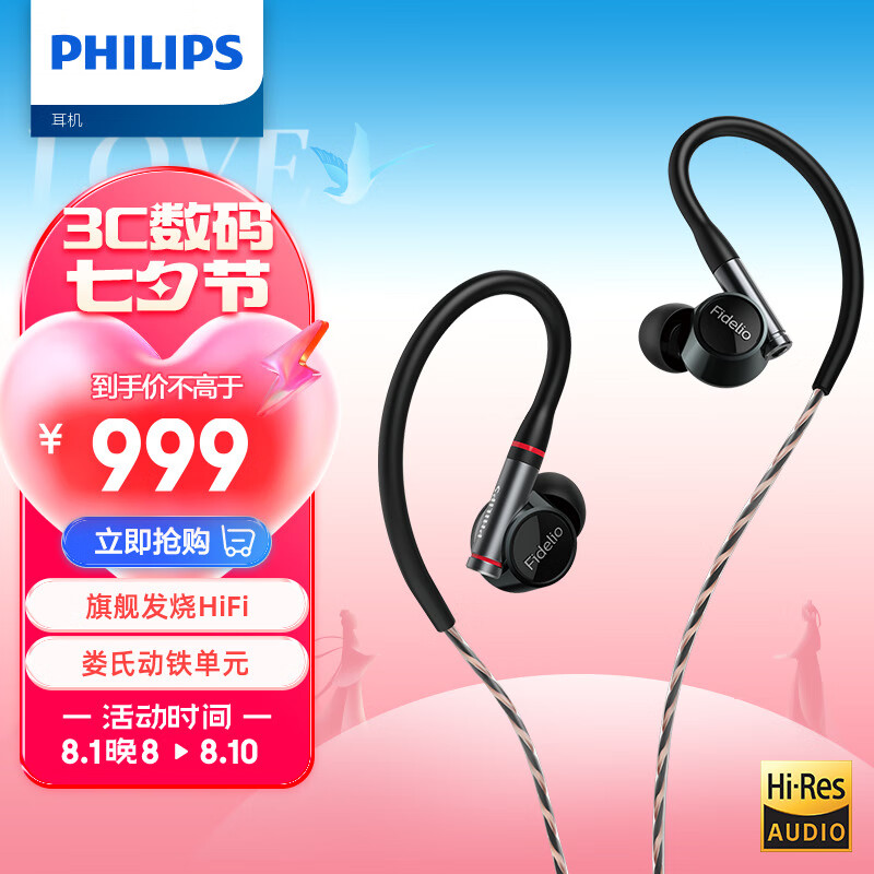 飞利浦(PHILIPS)有线耳机入耳式HiFi旗舰耳机一动圈两动铁高保真音质发烧耳机手机可直推3.5mm音频接口S3价格:999.00元!