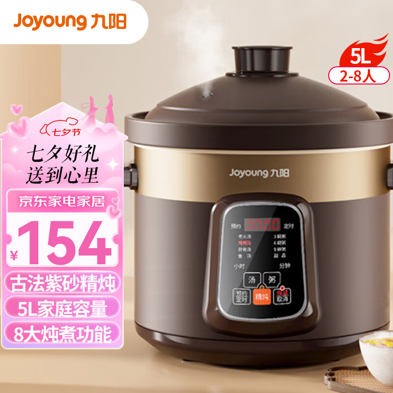 九阳(Joyoung)电炖锅电炖盅5L大容量紫砂 预约电砂锅大功率 陶瓷煮粥煲汤锅DGD50-05AK价格:154.00元!