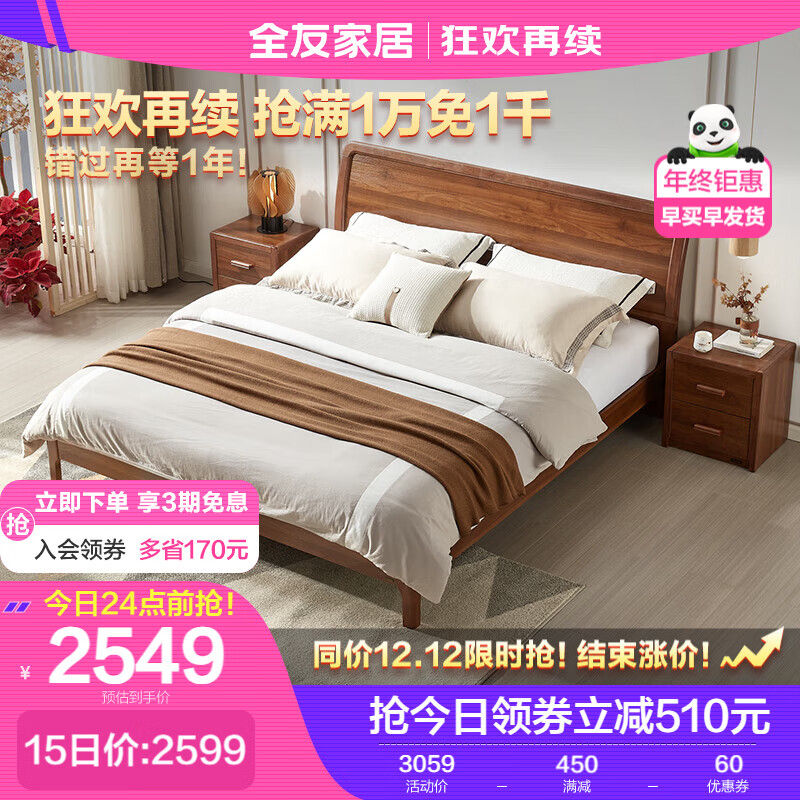 全友家居 床简约卧室家具新中式双人床主卧室大床婚床121206价格:3059.00元!