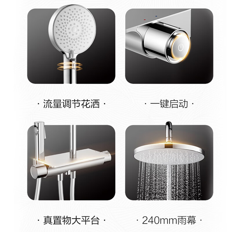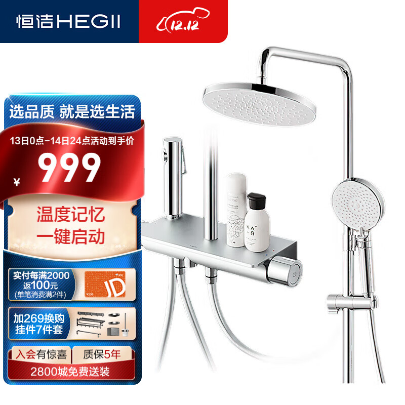 恒洁(HEGII)淋浴花洒套装 一键启动贴墙置物 雨淋花洒HMF923-333(冰极银)价格:999.00元!
