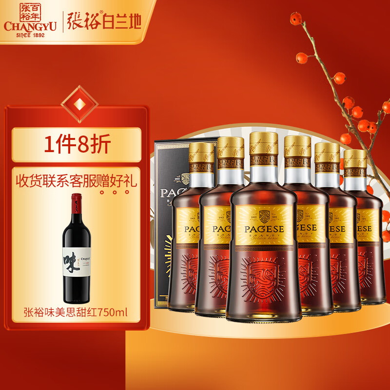 张裕 派格尔金马白兰地 500ml*6瓶 整箱装 洋酒礼盒送礼价格:768.00元!