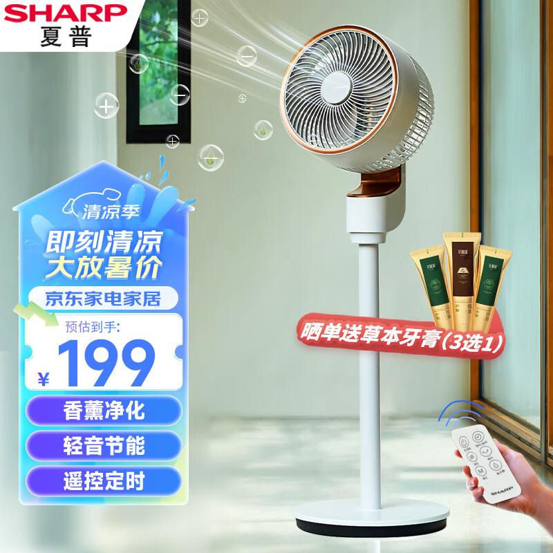 夏普(Sharp)空气循环扇/电风扇/家用落地扇/纳米离子群净化遥控定时轻音节能香薰驱蚊强劲对流风PJ-CD603B价格:229.00元!