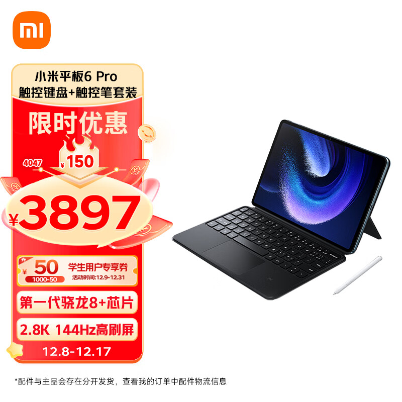 小米平板6Pro 11英寸 骁龙8+强芯 144Hz 2.8K 12+256GB 移动办公娱乐平板电脑 远山蓝【触控笔+键盘套装】价格:3897.00元!