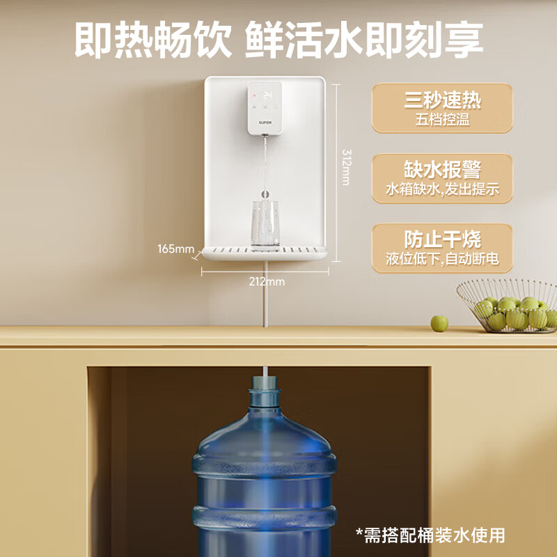苏泊尔(SUPOR)管线机智能抽水自吸桶装水家用下置水桶直饮机超薄速热饮水机 升级智能管线机20G3A价格:489.00元!