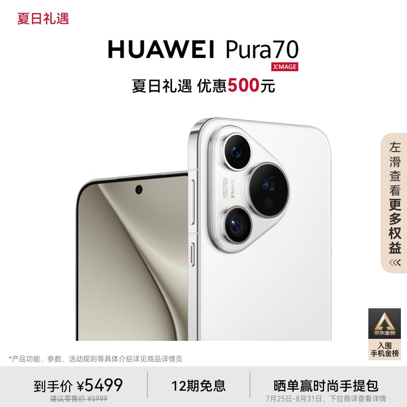 HUAWEI Pura 70 雪域白 12GB+512GB 超高速风驰闪拍 第二代昆仑玻璃 双超级快充 华为P70智能手机价格:5499.00元!