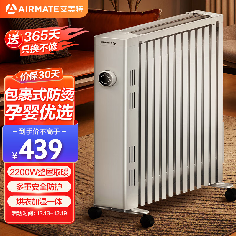 艾美特(AIRMATE)【孕婴防烫】取暖器/电热油汀/电暖器家用/电暖气片 13片加宽烤火炉加湿烘衣一体电热油汀 WU13-X5价格:489.00元!