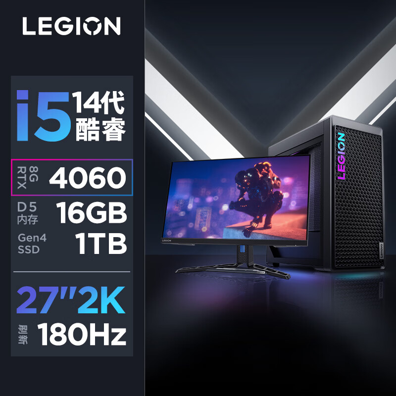 联想(Lenovo)拯救者刃7000K 2024游戏电脑主机(酷睿14代i5-14400F RTX4060 8GB显卡 16G DDR5)27英寸套装价格:8699.00元!