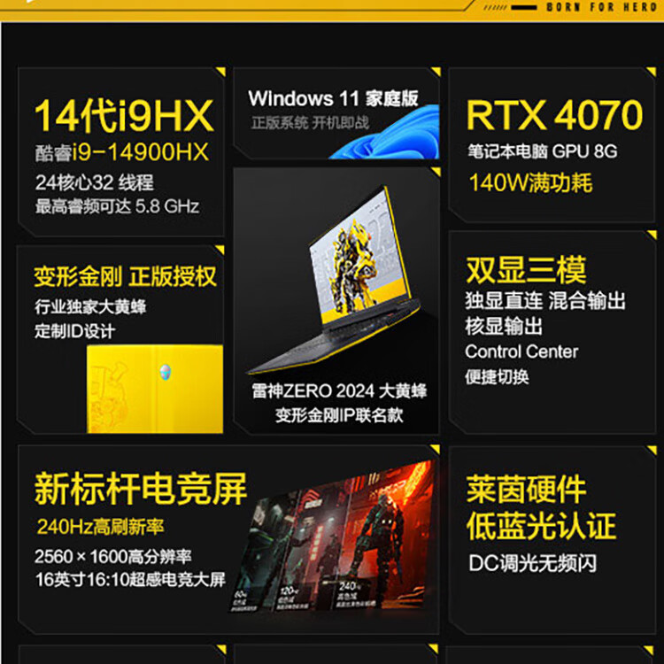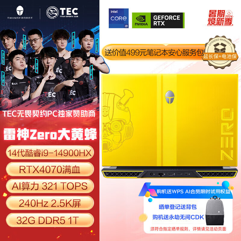 雷神 Zero2024 16英寸游戏本笔记本电脑(14代酷睿24核i9-14900HX 32G DDR5 1T RTX4070 240Hz 2.5K屏)价格:10999.00元!