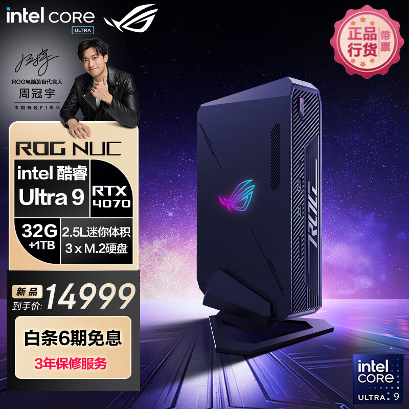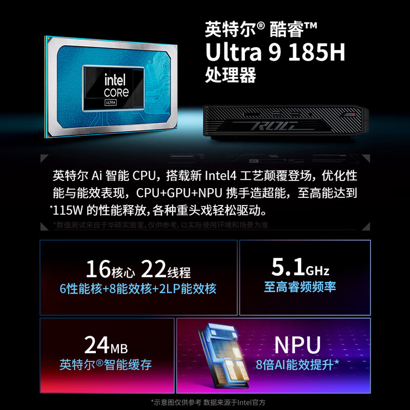 ROG NUC 2024酷睿Ultra 9迷你独显游戏设计师AI电脑mini主机 (U9-185H 32G DDR5 1TB SSD RTX4070 )价格:14999.00元!