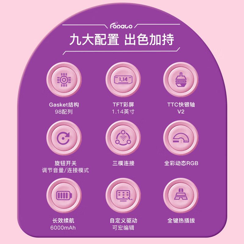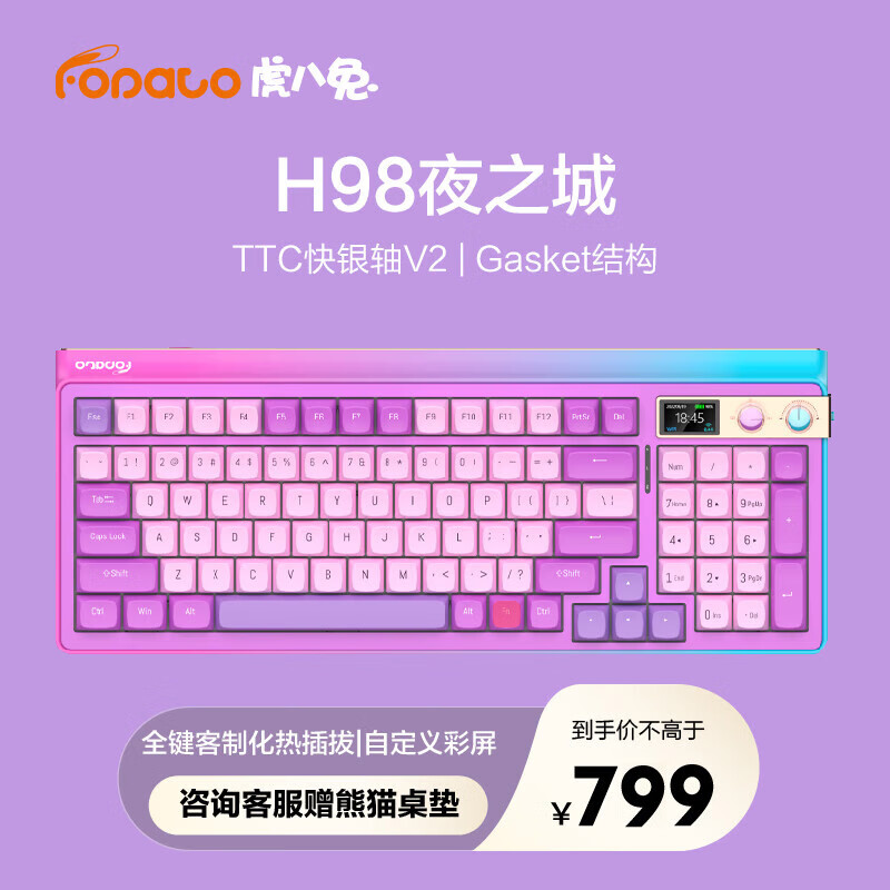 虎八兔(FOPATO) H98 客制化游戏机械键盘 三模2.4G/蓝牙/有线 全键热插拔 gasket结构 TFT彩屏 快银轴V2价格:899.00元!
