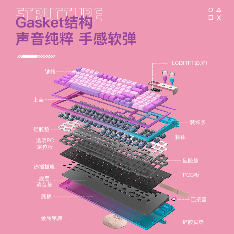 3、快银轴声音不大但是很悦耳,触发也十分灵敏。整体颜值也太高了!!!太好看了!!diy小屏幕也很好玩!
