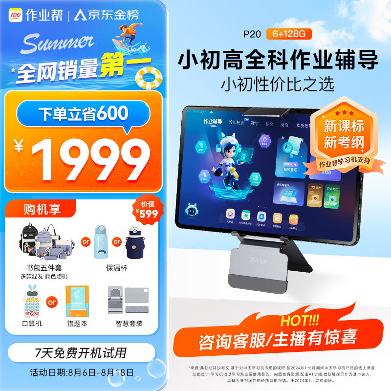作业帮AI学习机P20 平板小学到高中全科作业辅导举一反三 精讲视频 银河大模型写作指导12’’6+128G价格:1999.00元!
