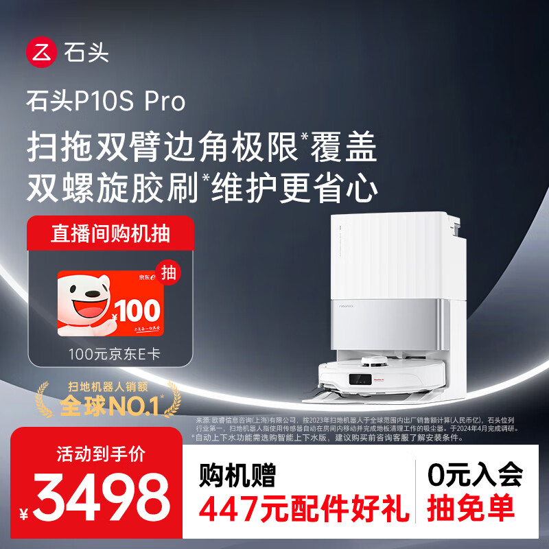 石头(roborock)扫地机器人扫拖一体 P10S Pro 扫拖洗烘一体机 自动集尘热水洗拖布烘干补水擦地拖地 A1160RR价格:3498.00元!