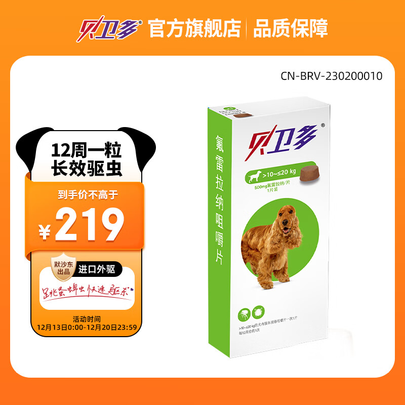 贝卫多默沙东 狗体外驱虫药 中型犬宠物狗驱虫 欧洲原装进口去除跳蚤蜱虫10-20kg价格:239.00元!