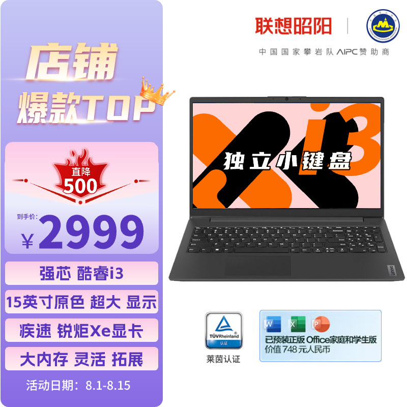 联想笔记本电脑 昭阳青春版轻薄本 英特尔酷睿处理器 15.6英寸超大屏幕 16G 512G 商务办公学生office价格:2999.00元!
