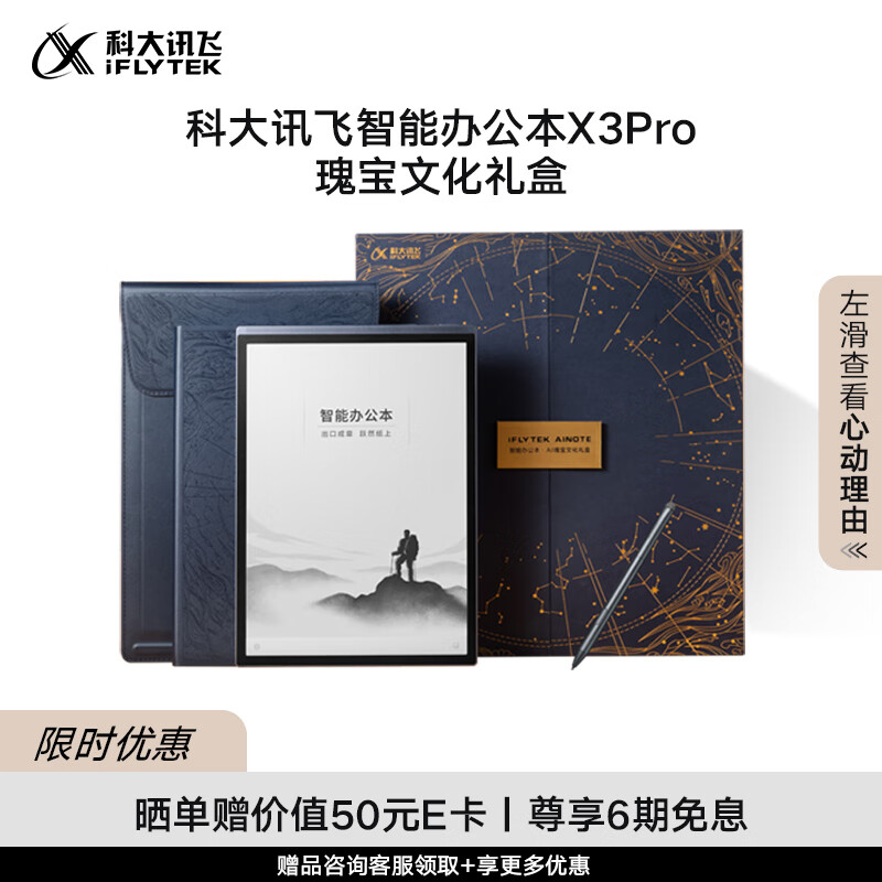 科大讯飞(iFLYTEK)智能办公本X3 Pro AI瑰宝文化礼盒 10.65英寸星火认知大模型 语音转写电子书阅读器 墨水屏电纸书价格:5799.00元!