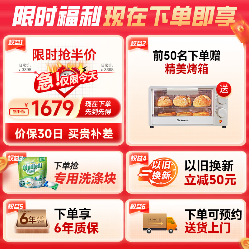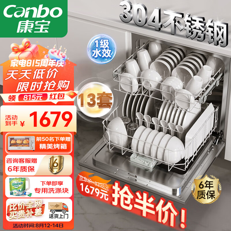 康宝(Canbo)海豚龙卷风洗碗机大容量嵌入式13套家用消毒烘干一体机 一级水效全自动304不锈钢 XWJ13-QB03价格:1679.00元!