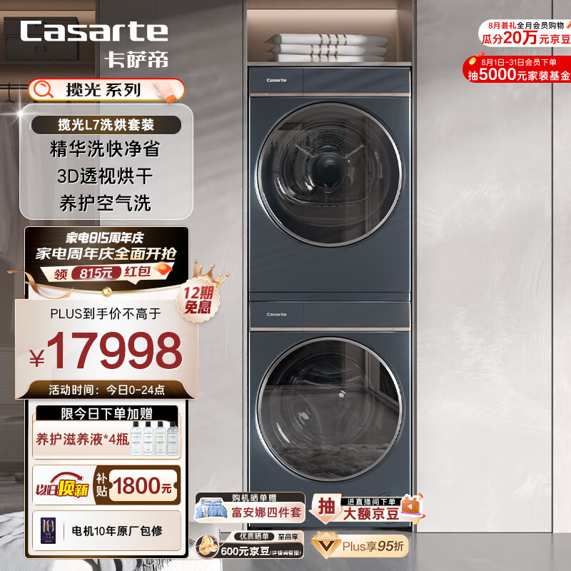 卡萨帝(Casarte)揽光L7洗烘套装 10KG精华洗滚筒洗衣机全自动+双擎热泵烘干机家用组合 3D透视 以旧换新10L7+10FL7价格:17998.00元!