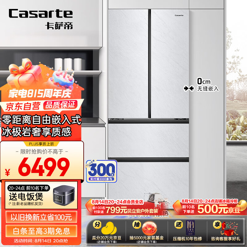 卡萨帝(Casarte)418升原石冰极岩系列超薄零嵌入式法式多门四开门白色家用一级电冰箱家用BCD-418WLCFDM4WYU1价格:6499.00元!