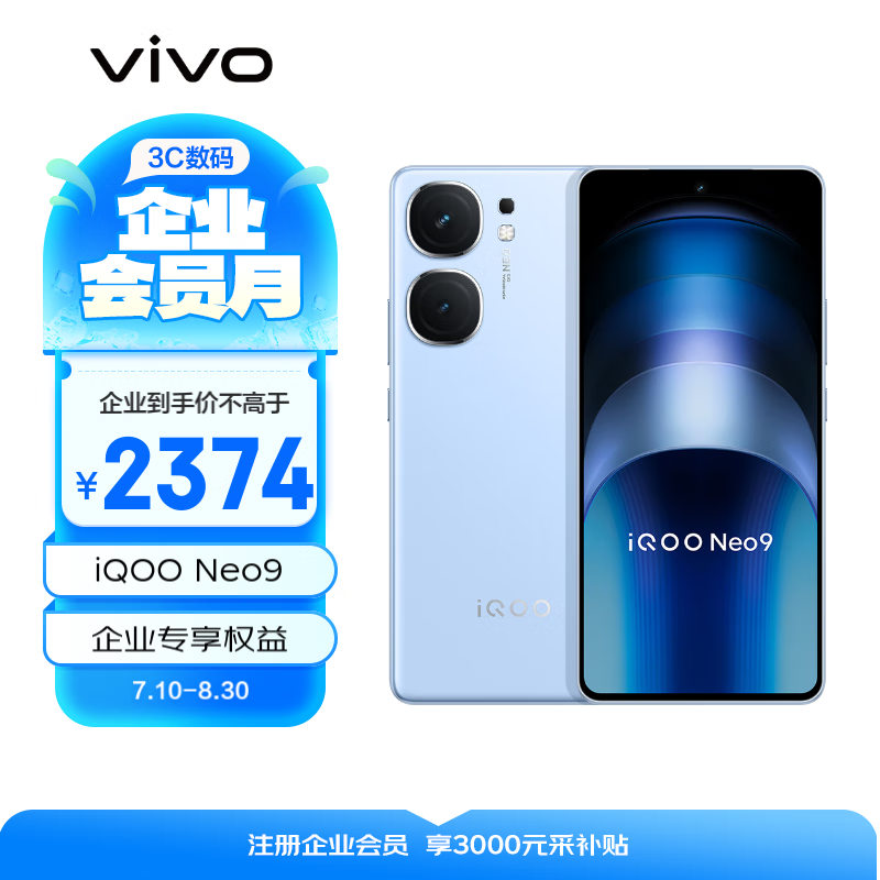 vivo iQOO Neo9 16G+256G 航海蓝 5G电竞游戏手机 120W超快闪充 第二代骁龙8【企业客户专享】价格:2499.00元!