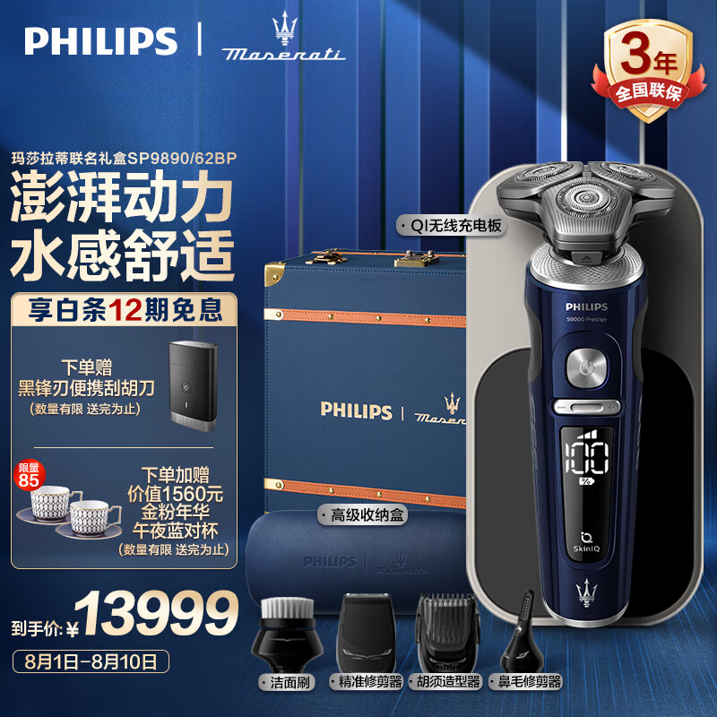飞利浦(PHILIPS)电动剃须刀蜂巢奢享9系玛莎联名 肌能感应高端SP9系列刮胡刀礼盒 生日礼物 送男友 送老公价格:13999.00元!