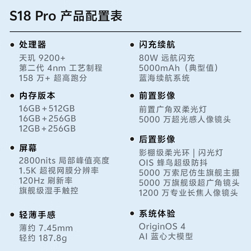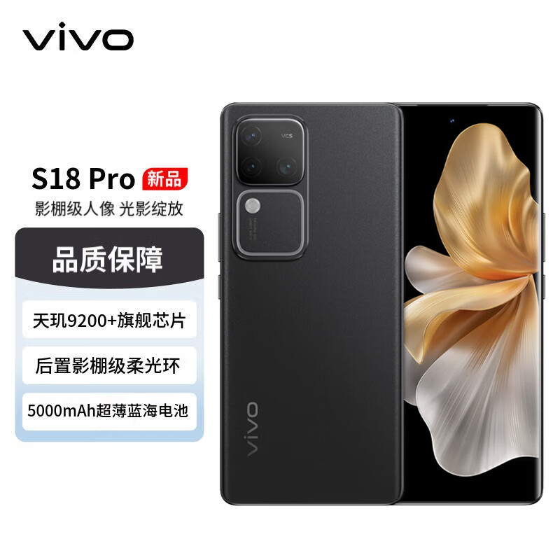 vivoS18 Pro 16GB+512GB 玄黑 天玑9200+旗舰芯片 后置影棚级柔光环 5000mAh超薄蓝海电池 拍照手机价格:3099.00元!