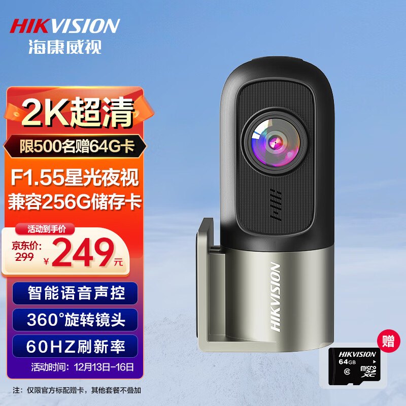 HIKVISION海康威视行车记录仪D1Pro 1440P高清星光夜视F1.55光圈语音声控价格:269.00元!