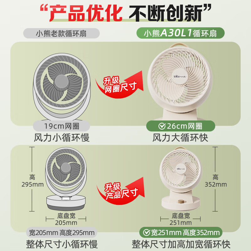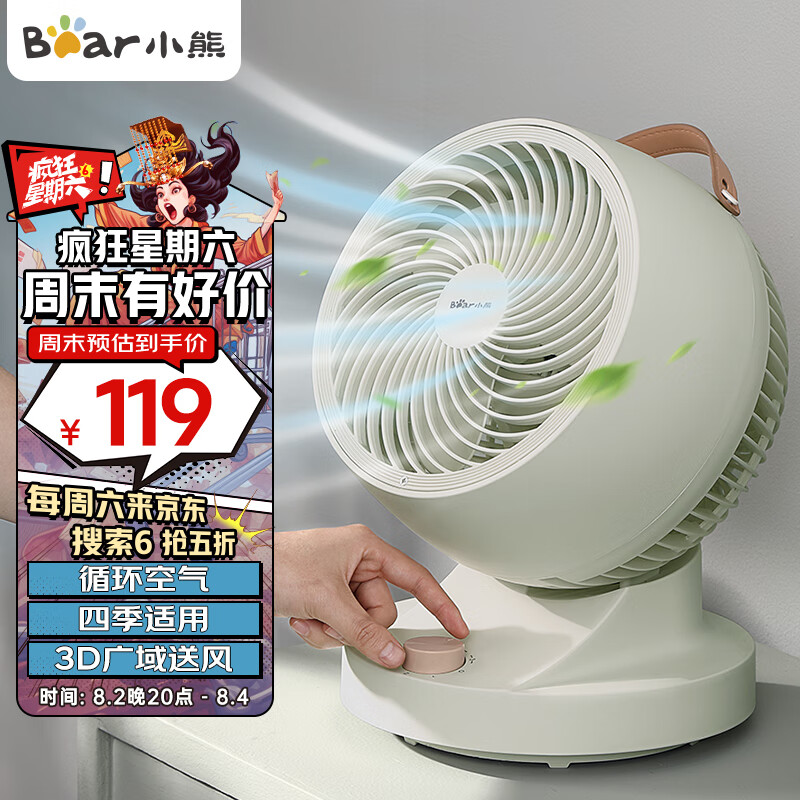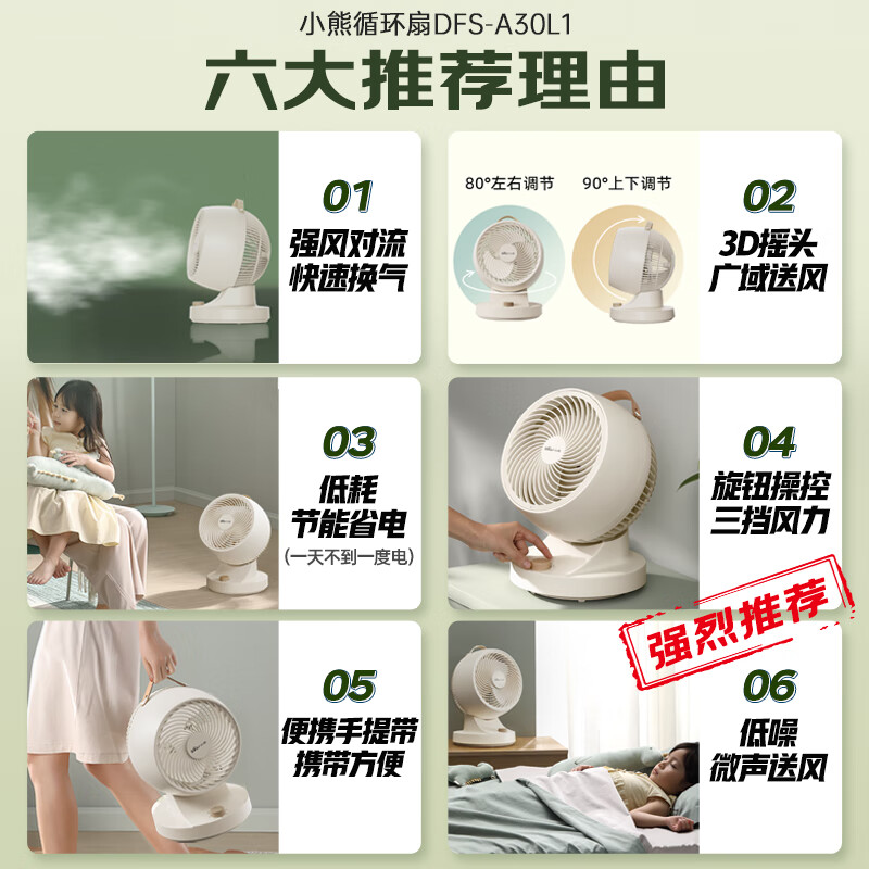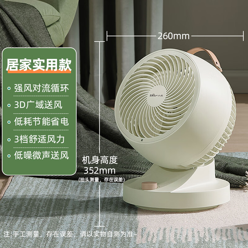 小熊(Bear)空气循环扇台式电风扇 家用节能风扇强力对流涡轮换气扇 3D摇头大风量台扇桌面小风扇DFS-A30L1价格:119.00元!