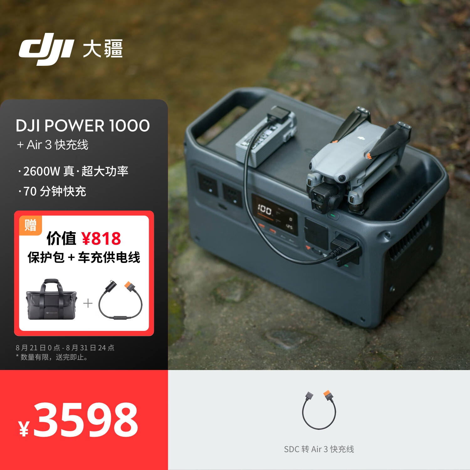 大疆【2600W真大功率】户外移动电源 1度电 220V大容量 DJI Power 1000 露营车载自驾+Air 3快充线价格:3598.00元!