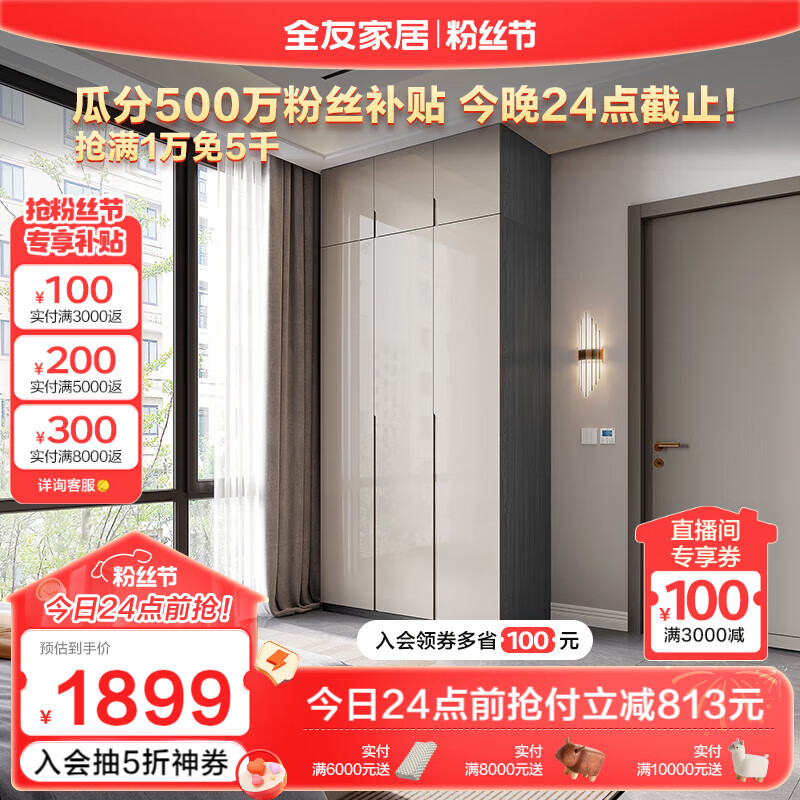 全友家居 极简卧室衣柜顶柜组合靠墙简易衣橱简约衣服收纳柜子DG10010价格:2712.86元!